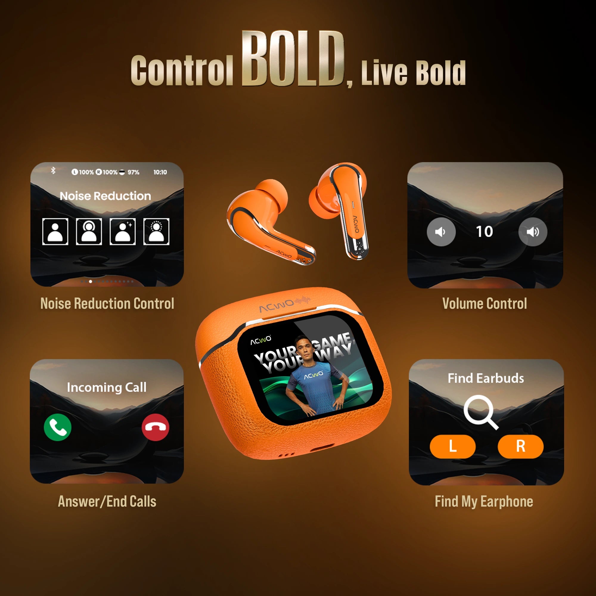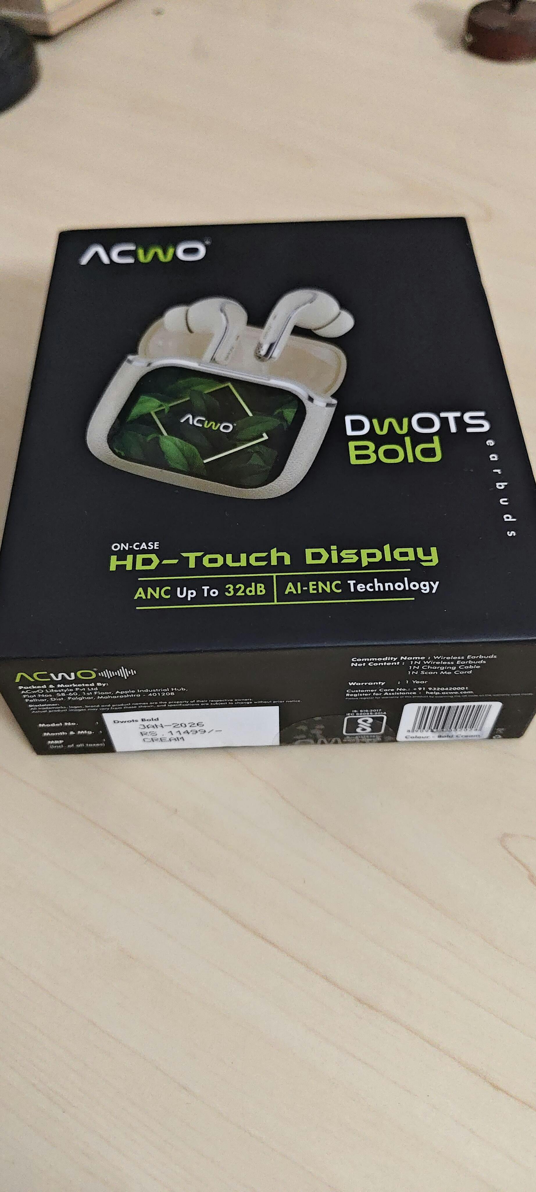 As we step into a new year brimming with innovation, ACwO introduces DwOTS BOLD—India’s first touchscreen earbuds with a stunning 1.83” Smart True HD Display that will leave you saying WOW. These groundbreaking TWS earbuds combine contemporary design with a new level of functionality, featuring a high-definition display that lets you control almost everything effortlessly. With advanced touch controls, you can answer calls, manage your music, adjust volume, toggle noise cancellation, and much more. Alongside the display screen, the earbuds also include sleek touch controls, setting a new benchmark for convenience and style. Offering 3D Spatial Audio and advanced Active Noise Cancellation (ANC) up to 32dB, these true wireless earbuds deliver an immersive listening experience. Equipped with 4 noise-cancellation mics and ENC technology, they ensure crystal-clear, noise-free calls, making them the best earbuds for phone calls. With up to 60 hours of battery life, these wireless earbuds are built to keep up with your busy lifestyle. The advanced Bluetooth v5.4 connectivity ensures seamless pairing, while the Find My Earphone feature adds unmatched convenience. Whether you’re searching for the best TWS earbuds, top-rated noise-canceling earbuds, or the best wireless earbuds for every occasion, these true wireless Bluetooth earbuds are designed to impress. Perfect for work, play, or travel, these ENC earbuds set a new standard for performance and style.
