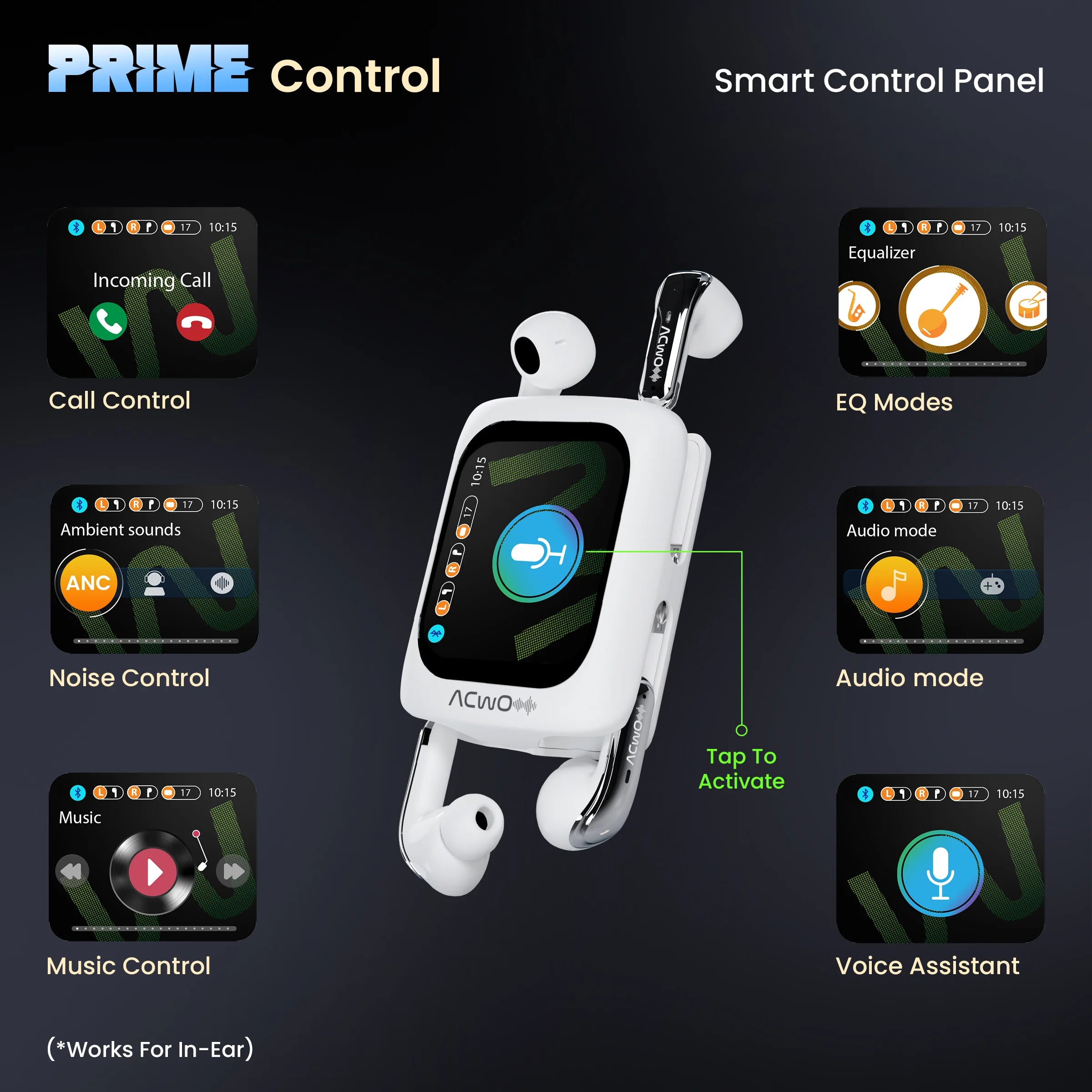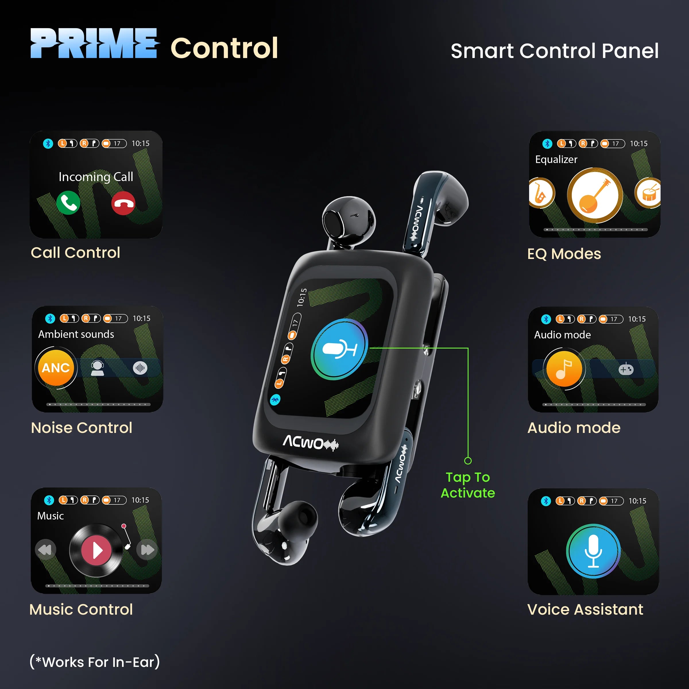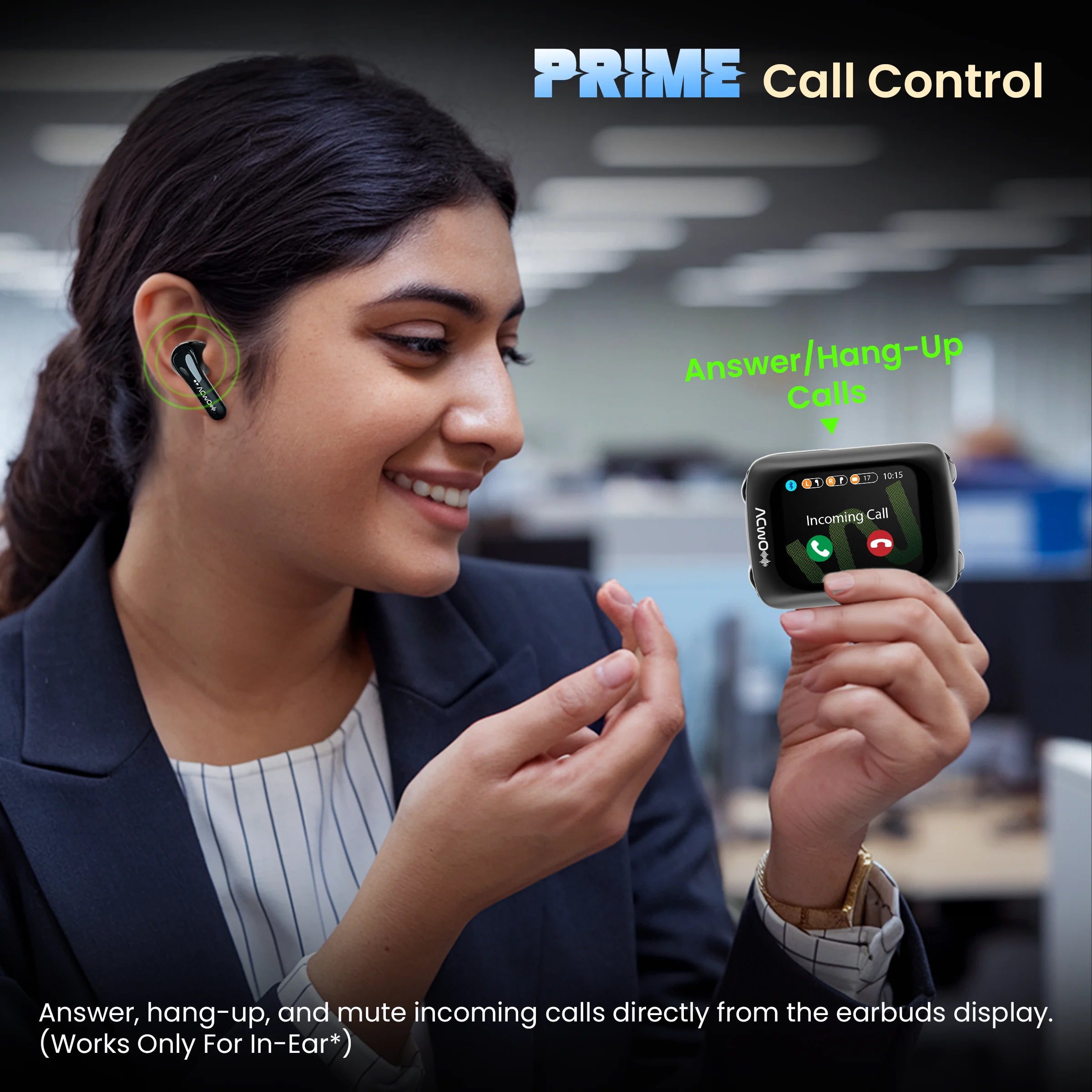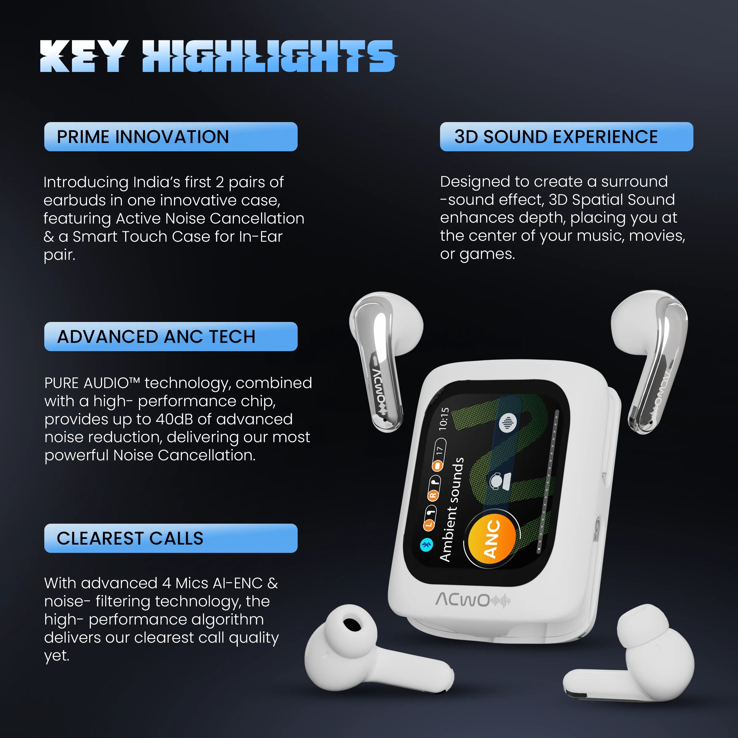 4 in 1 Earbuds | Smart Touch Display | ANC upto 40dB (In-Ear) | 80Hrs Playback Time | Quad Mic with AI-ENC