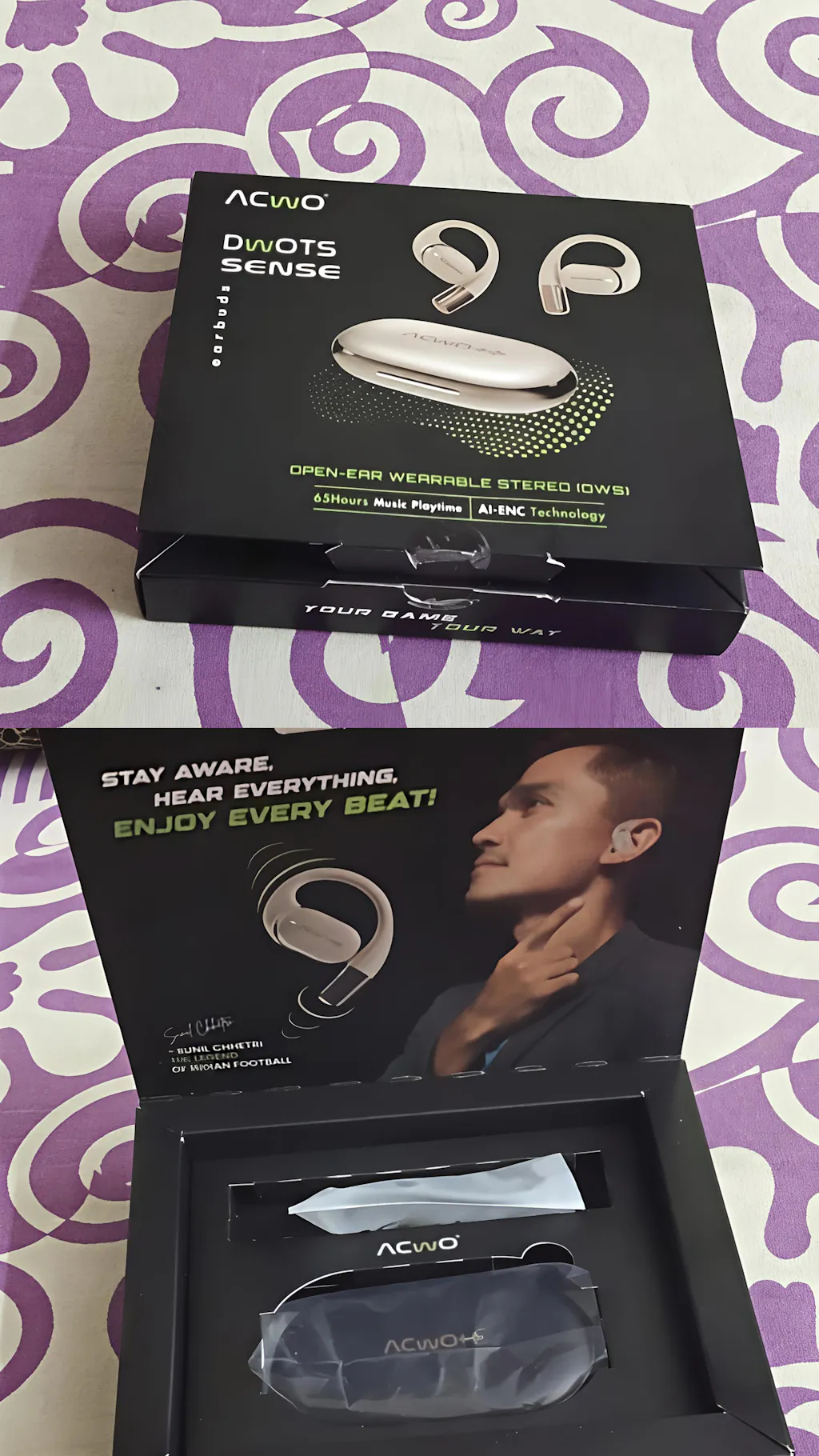 Designed with real user feedback in mind, DwOTS Sense features reinforced magnets for a secure dock, and a sturdy, travel-friendly case built to last. These open ear wireless earbuds keep you aware of your surroundings while delivering immersive audio via 15mm titanium drivers and BasS Boom X™ tuning. With up to 65 hours of playtime, seamless Bluetooth 5.3 connectivity, and a sweat-proof, open-fit design, they’re built for running, workouts, and all-day wear. Quad-mic ENC ensures crystal-clear calls, and the ultra-low 40ms latency keeps video and gaming smooth. Easy EQ switching and IPX5 durability round off a reliable, feature-packed on-ear experience — proof that ACwO listens, improves, and delivers.